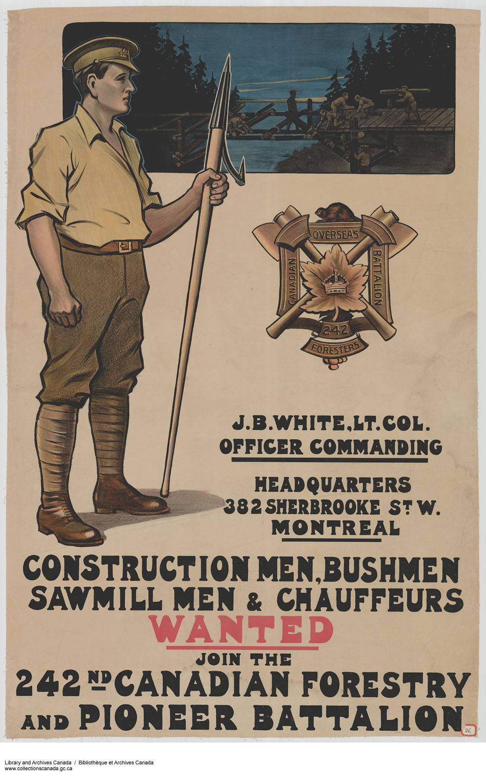One of my more recent interests is the work of the Canadian Forestry Corps (CFC) during the First World War. The CFC was raised specifically to supply the Allied armies with a desperately-needed resource: timber. Whether it was to needed to support dugouts, hold barbed-wire, or aircraft frames, wood became one of the most basic resources of the First World War. Composed primarily of lumberjacks and foresters, the CFC eventually operated in France, England, and Scotland and succeeded in preventing a timber shortage. For a bit more of a background, you can read another of my posts here.