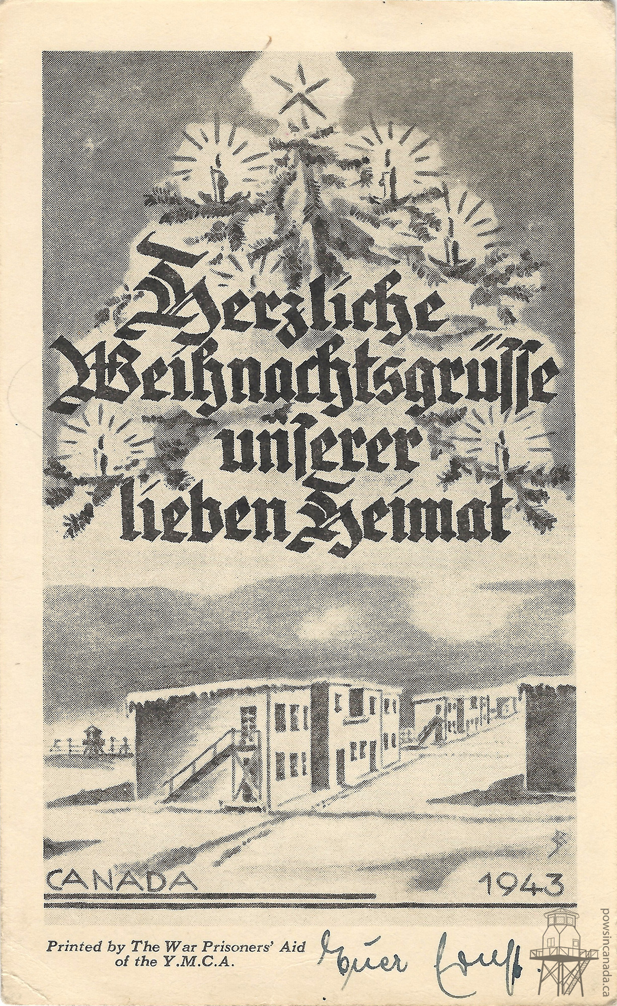 Christmas postcard produced by the War Prisoners’ Aid of the YMCA for POWs interned in Canada in 1943. Author’s Collection.