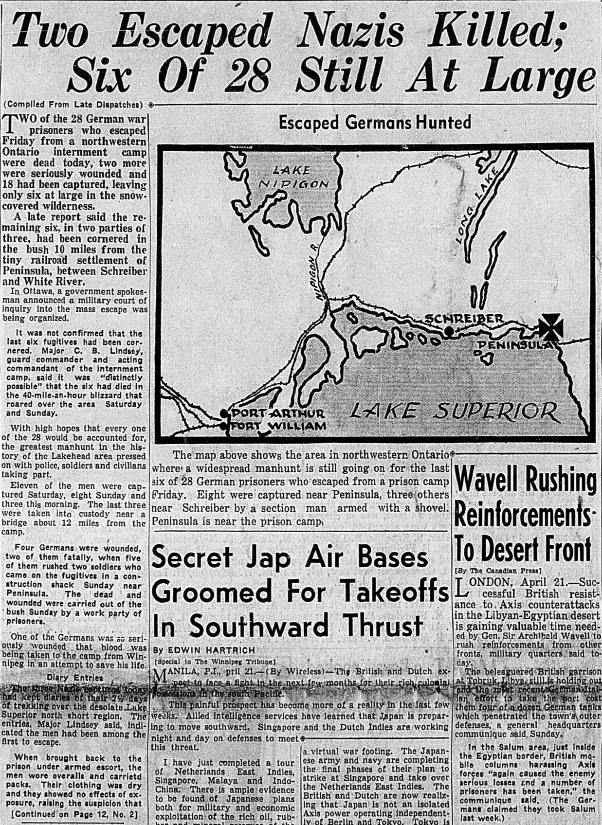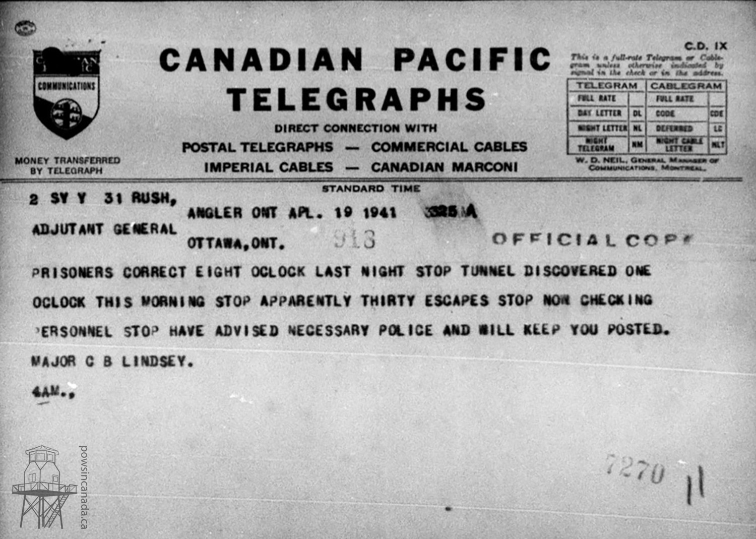 By the end of the first day, April 19, patrols recaptured eleven of the twenty-eight missing prisoners had. Each prisoner was well-supplied with food, clothing, and detailed maps of Canada and the United States – evidence of a well-planned escape.
