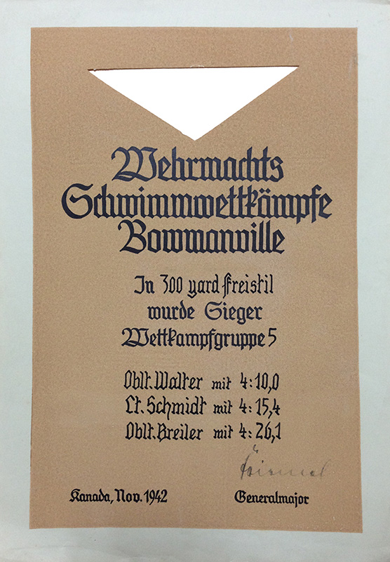 Denazified Sports certificate awarded to Lt. Schmidt at Camp 30 (Bowmanville). Author’s Collection.