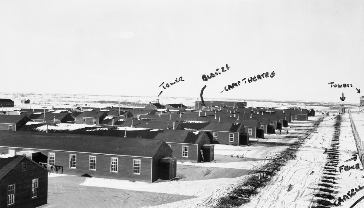 Closed following the Allied advances in Europe, the Wainwright Training Centre had trained thousands of Canadian soldiers between 1940 and 1944. With facilities already in place, converting the training centre into an internment camp proved relatively easy and Camp 135 soon had separate quarters and messes for the officers and other ranks, recreation halls, canteens, a library, a hospital and dental clinic, a carpenter shop, a boot repair shop, and a tailor’s shop.