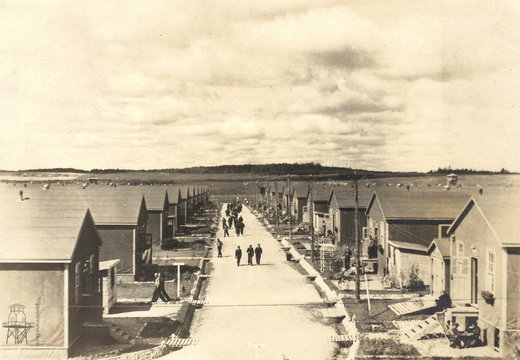 The first prisoners – some 501 Category B and C Internees – arrived at Monteith on July 14, 1940, immediately outnumbering the village’s 250 residents. Most of the POWs were housed in the former detention farm facilities but some guards and internees lived in tents until additional buildings were erected later that summer.