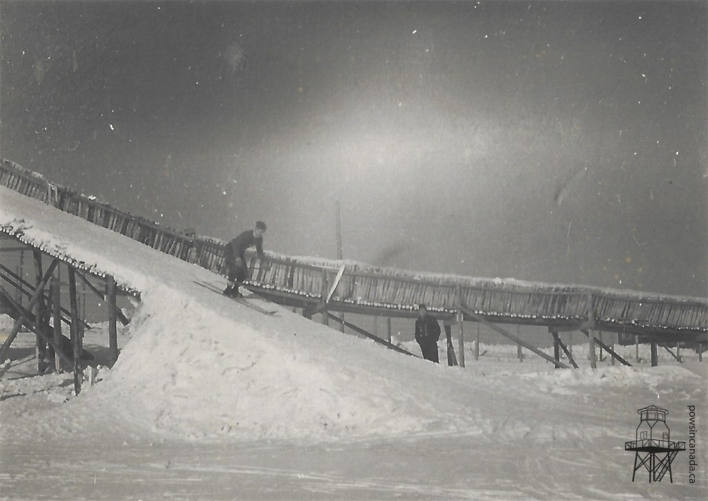 In the winter, prisoners flooded parts of the recreation grounds and converted them into separate skating and hockey rinks. As winter recreation was initially limited, camp staff permitted small groups of fifteen to twenty POWs to leave the enclosure and ski on a nearby hill under the watch of armed guards. Once this practice was discontinued due to security concerns, the POWs simply took matters into their own hands and built their own ski and toboggan hill within the main enclosure.