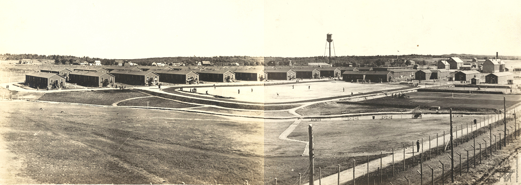 When war broke out in 1939, the village of Monteith was the site of a Ontario Government Detention Farm. Here, civilian inmates arrested from larger cities in the province spent part of their sentence learning how to work on a farm, a practice that not only helped boost agricultural production but also provided inmates with useful skills. Its remoteness and existing facilities caught the attention of military authorities and it was identified as a potential location for an internment camp. After Canada agreed to accept prisoners from the United Kingdom, the Department of National Defence took over the Detention Farm in 1940.