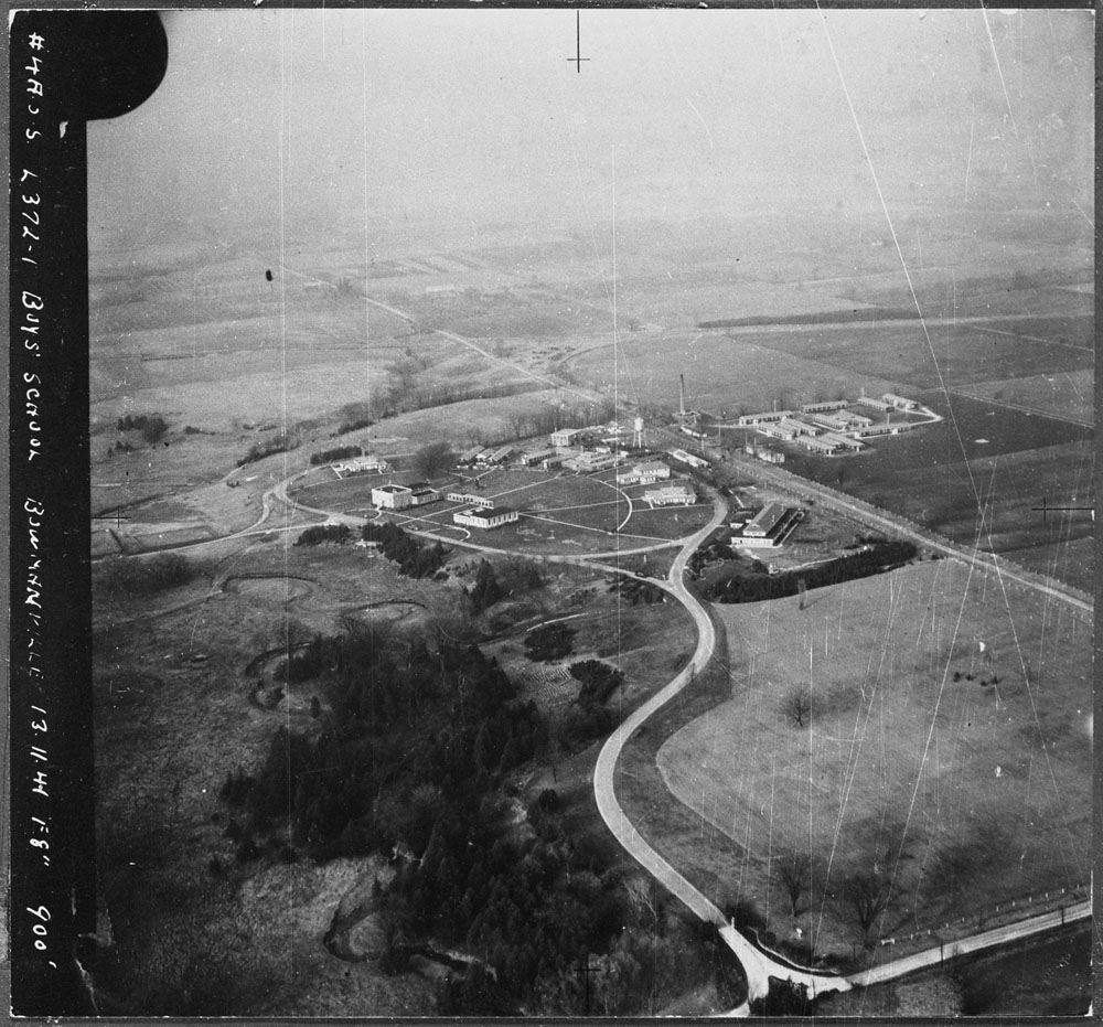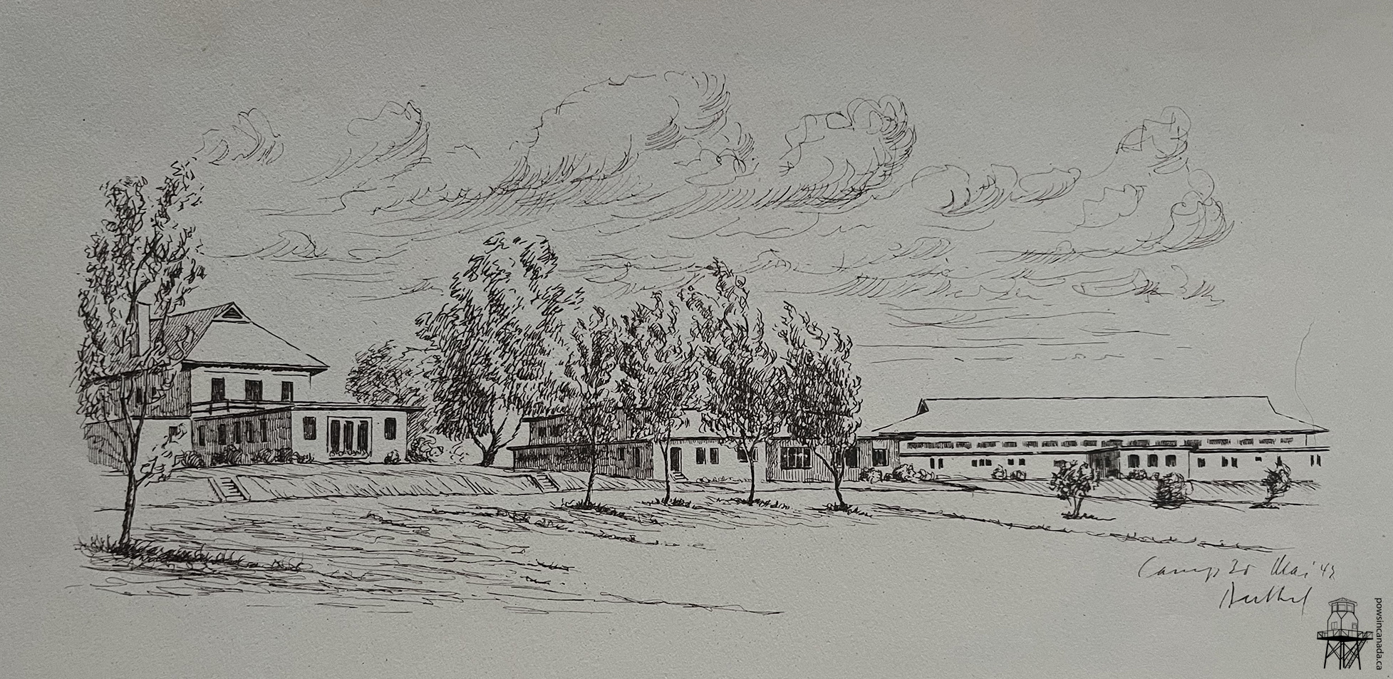 The Department of National Defence settled on using the Bowmanville Boys’ Training School on the east side Bowmanville for the new camp. With accommodation and messing to house over 600 officers already in place, the school made for an easy transition to an internment camp. Most of the school’s buildings were incorporated into the main enclosure, now surrounded by barbed wire fences and guard towers. A recreation building and an extension to the mess hall was added within the enclosure while quarters and messes for the guards and camp staff were erected on the east side of the camp.