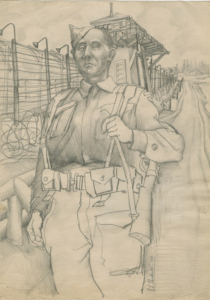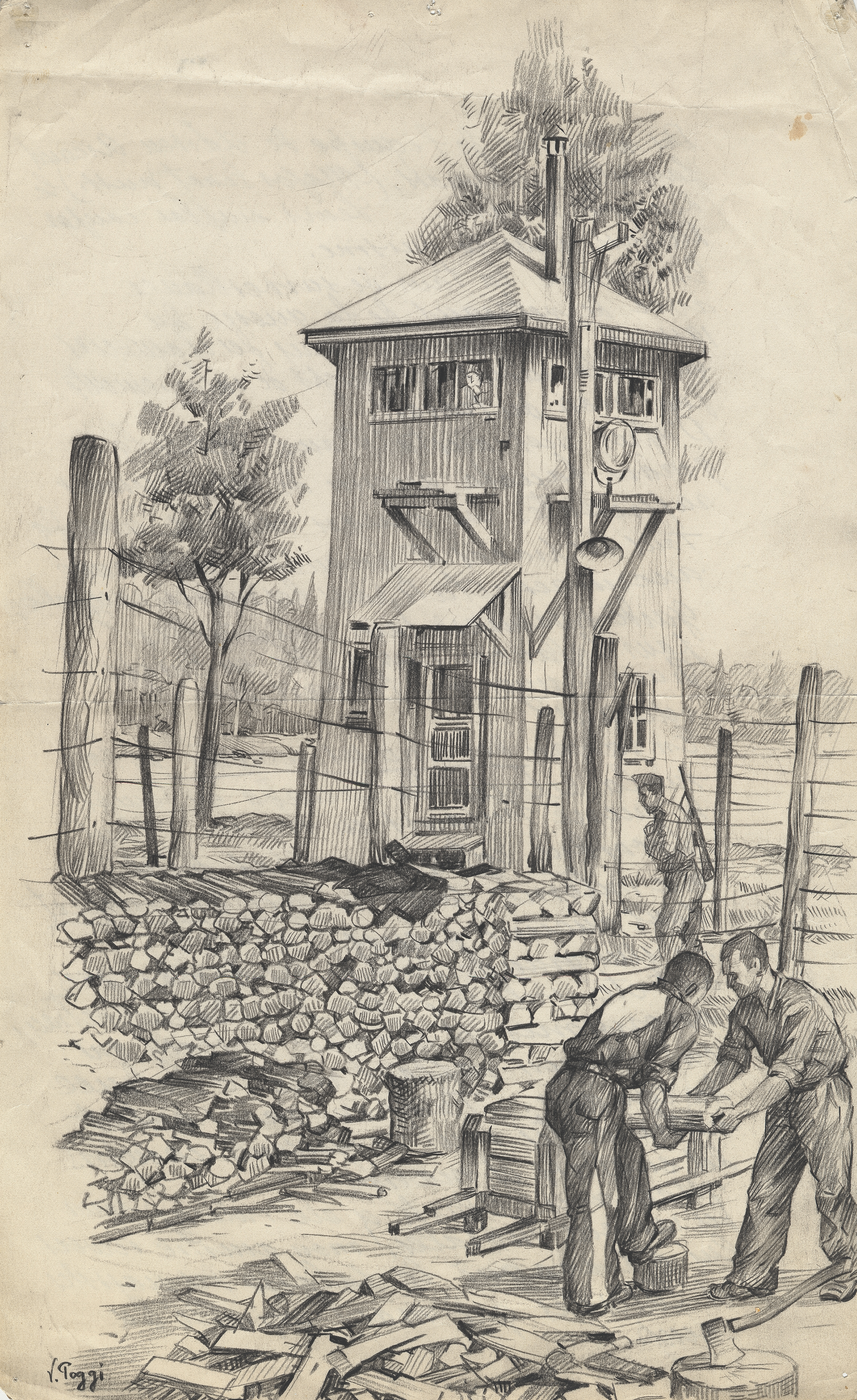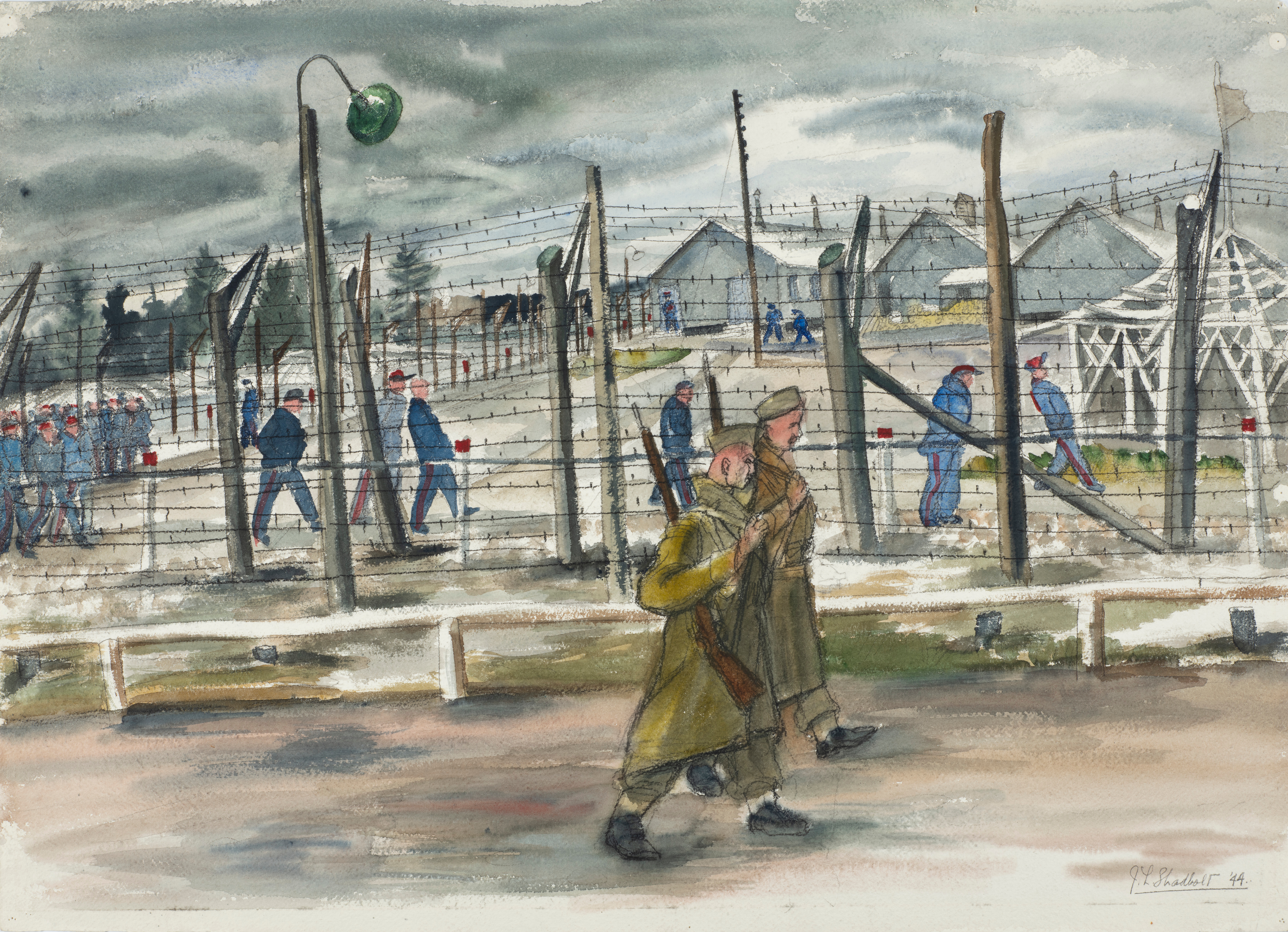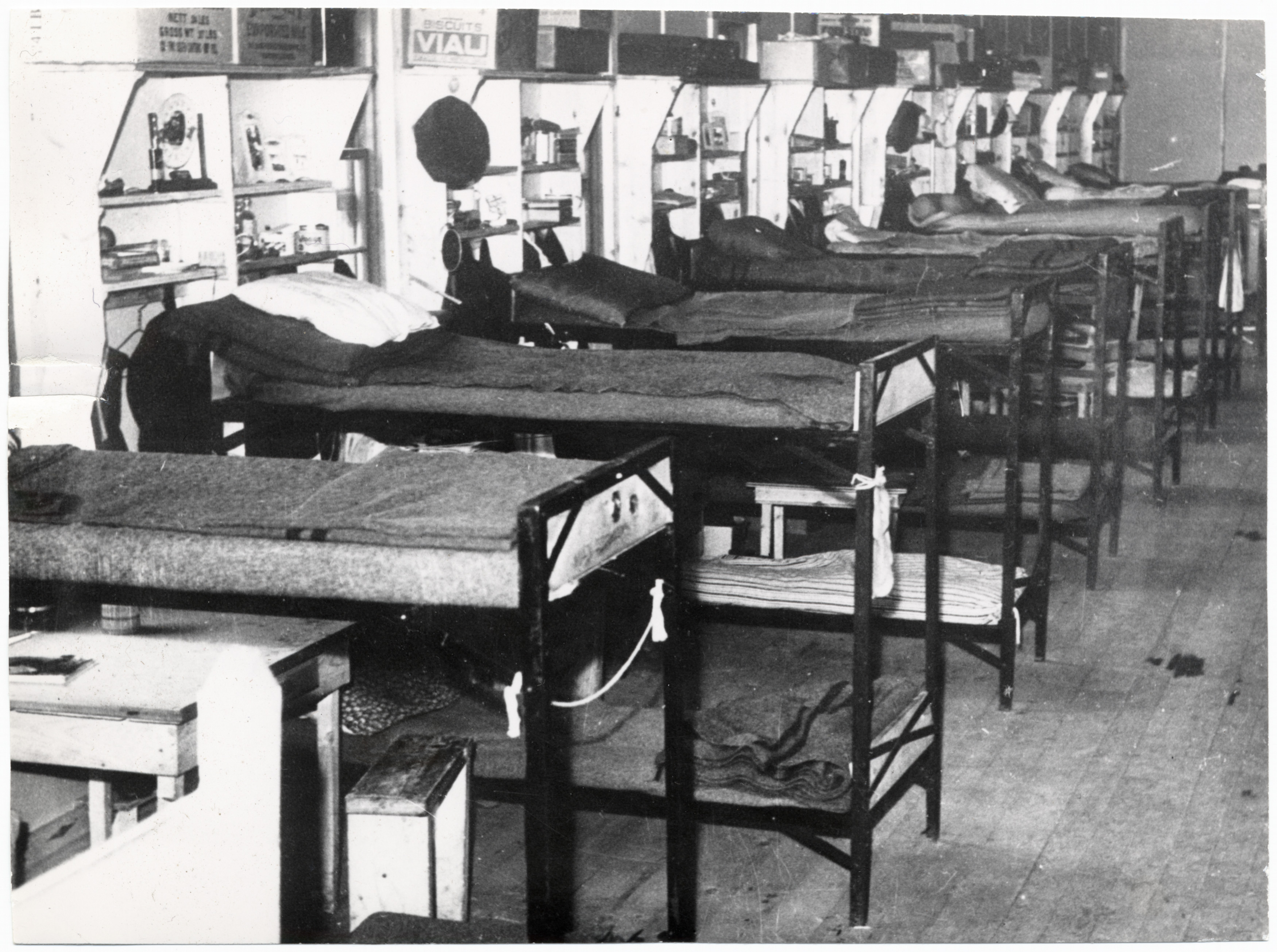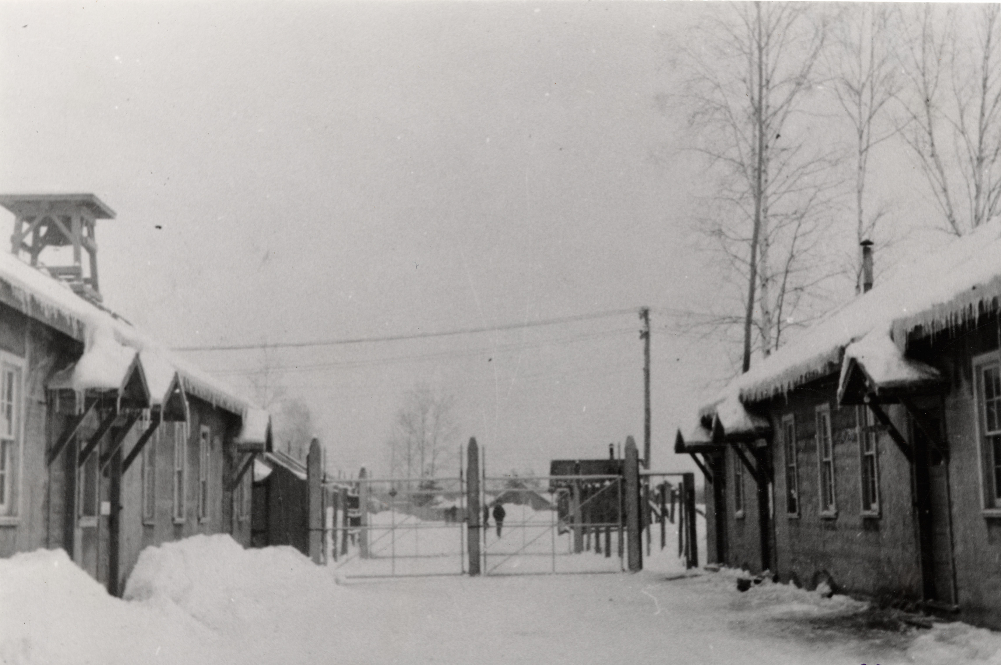 The location chosen for Camp P was a government Forest Experimental Station on the northern shore of Centre Lake, some fifteen kilometers from Petawawa’s military training camp. Existing facilities were quickly converted, additional buildings constructed and barbed wire fences and four guard towers erected around the new enclosure.