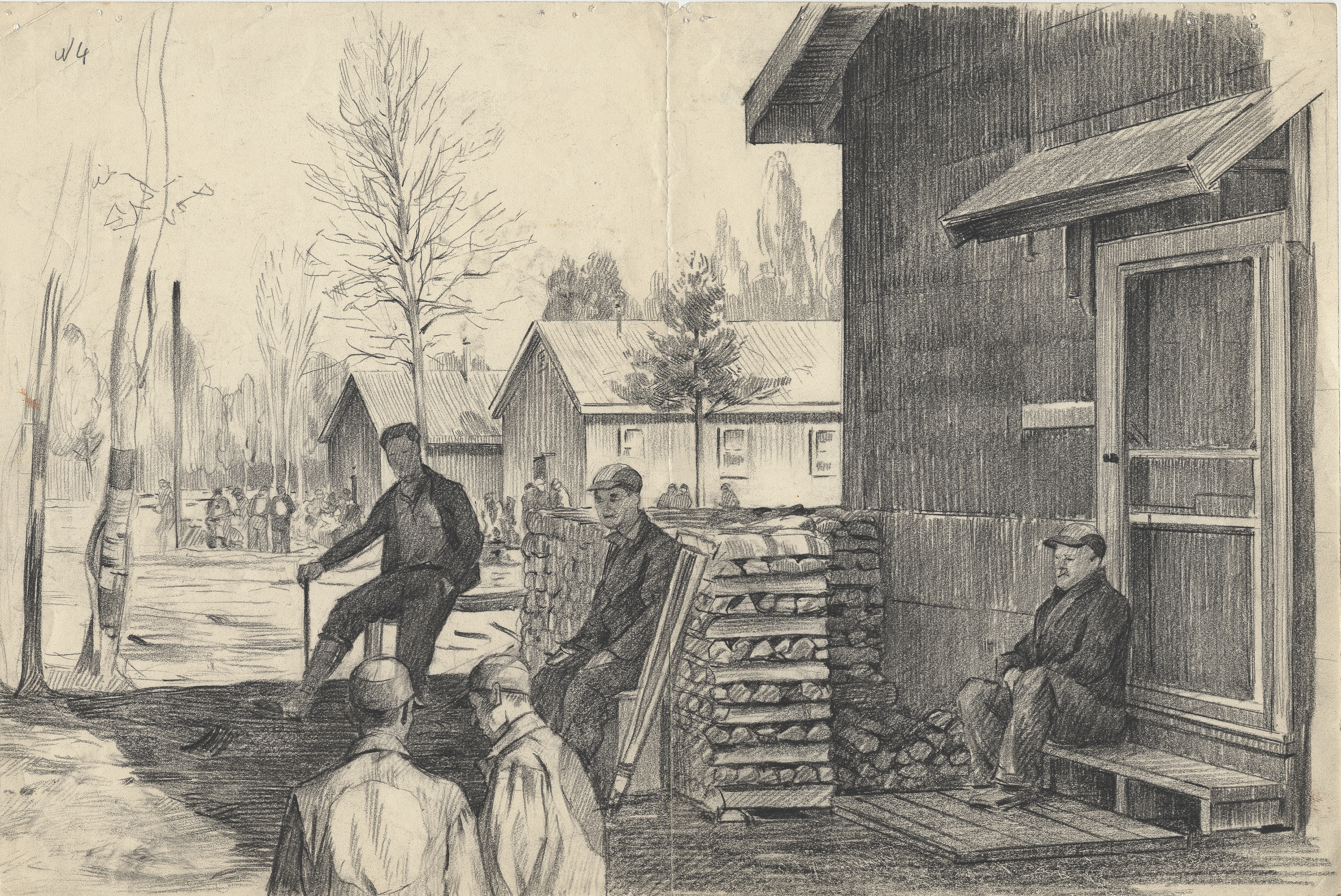The first internees arrived from the Fort Henry Receiving Station in late September and they were soon joined by internees from the Quebec Citadel and other receiving stations across Eastern Canada. With limited facilities and internment policies rooted in the First World War, recreation was quite limited – at least initially – at Camp P. Instead, authorities focused on providing prisoners with work, believing it would improve both the prisoners’ morale and health. Many internees found work erecting additional barracks and buildings in and outside the enclosure while others cut fuelwood, cleared trees, spread gravel along forestry roads, and worked in general maintenance.