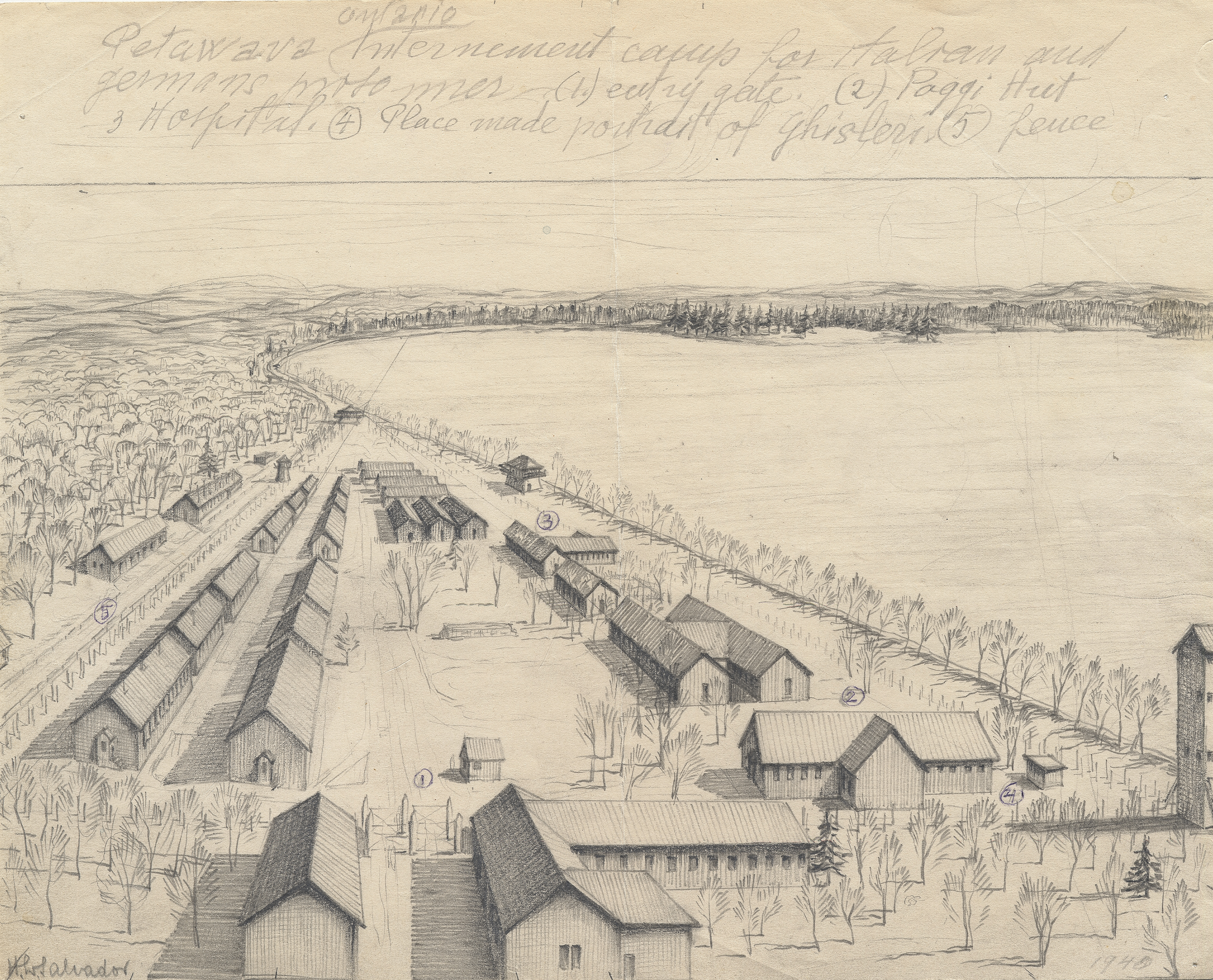 Italy’s declaration of war in June 1940 saw the arrival of Italian internees in Petawawa as authorities began rounding up known and suspected pro-fascist Italian-Canadians. Over the coming year-and-a-half, many internees in Camp P – later renamed Camp 33 – were released conditionally as authorities determined they posed little or no security risk. Those remaining in camp by April 1942 were, however, joined by groups of Japanese-Canadian internees transferred from Camp 130 (Kananaskis) and British Columbia.