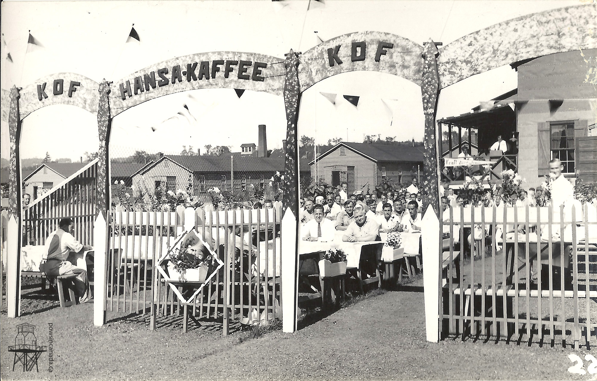 The prisoners converted their recreation hut into as a coffee restaurant, “Hansa-Kaffee,” each weekend, with the POW orchestra providing musical entertainment. As several of the EMS had worked as musicians entertaining passengers on German liners before the war, the camp possessed significant musical talent.