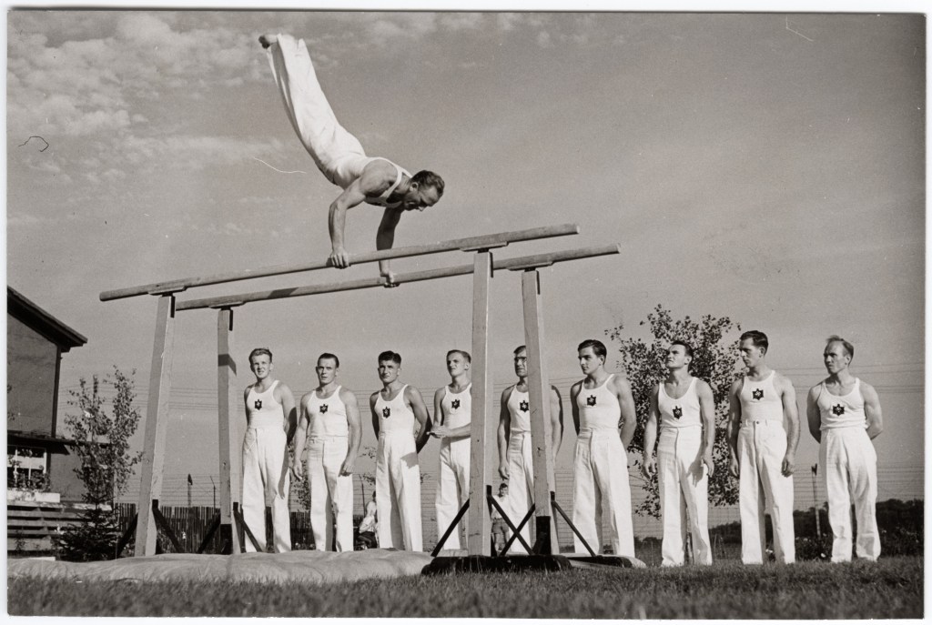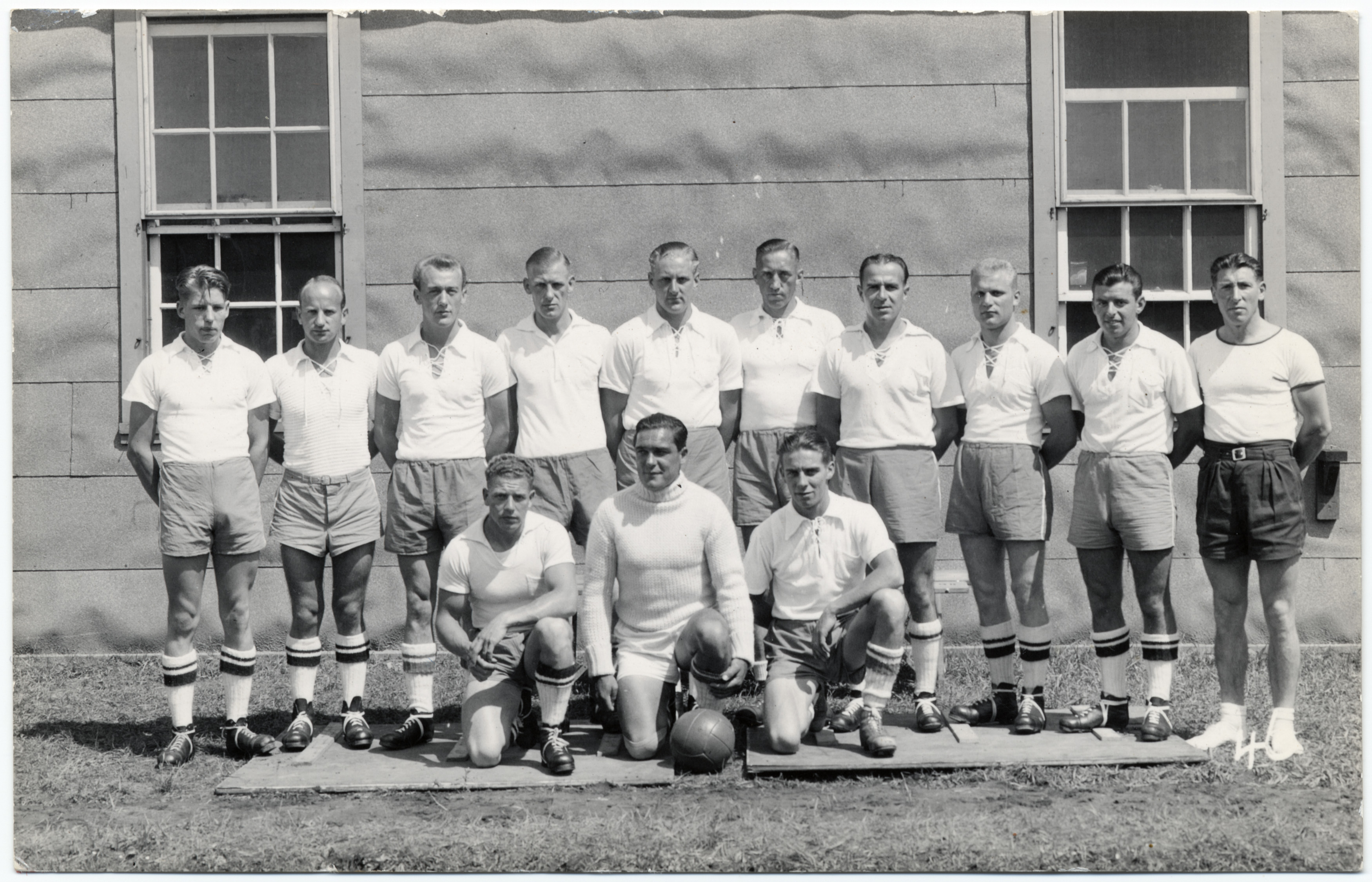 With a recreation field just outside the prisoners’ barracks, many prisoners busied themselves with football (soccer) and tennis and, in 1944, some were even teaching themselves how to play baseball. During the winter months, POWs skated and played hockey while others moved indoors and spend their their time boxing, wrestling, weightlifting, playing table tennis and card games, and practicing their gymnastics. The YMCA also provided thirty-five pairs of skis in 1944 and the POWs were permitted “skiing parties” twice a week and they also built a ski jump in the enclosure.