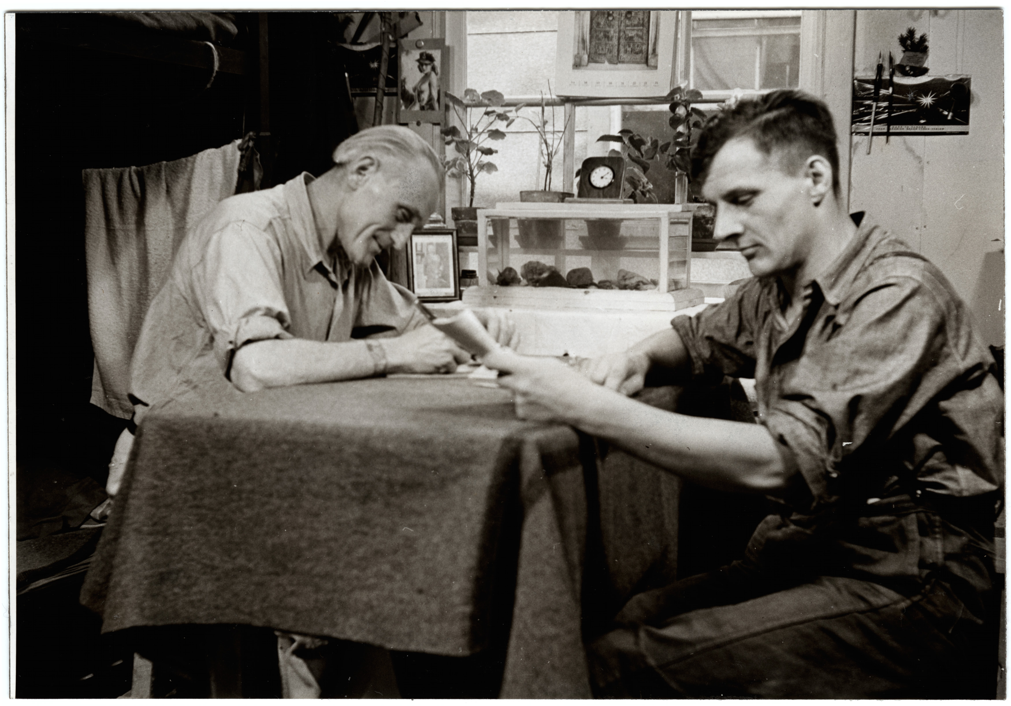 Others prisoners filled free time with their studies. Languages, including German, Spanish, Swedish, Norwegian, English, and French, and technical courses for shipmates, engineers, machinists, and wireless operators were among the more popular. Several craftsmen even offered courses on hobby work, wood carving, wood burning, and leather work. Professors from the nearby Lennoxville’s Bishop College even provided some public lectures.
