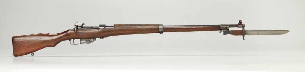 The No. 1 Mk. III SMLE had replaced the Ross rifle as the standard infantryman’s rifle in the First World War and remained in active service for the first part of the Second World War. While prewar stocks of these rifles were first allocated to active units headed overseas, some Veterans Guard companies were issued SMLEs. These too were eventually replaced by the No. 4 Mk. I Enfield rifles in the latter part of the war.