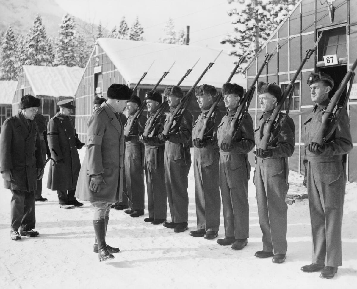 By 1943, production of firearms in Canada had increased to a level that finally allowed Veterans Guard companies and internment camps to receive more modern weapons. New No. 4 Mk.I Enfield Rifles, Bren guns, and Sten guns soon began replacing First World War-era rifles and machine guns still in service with the Veterans Guard across the country. By 1944, most guard companies were now armed with the same weapons Canadian servicemen were fighting with overseas; the men of No. 23 Company, for example, were armed with the following weapons: