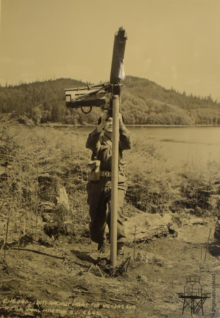 Vickers Machine Guns were briefly issued to some internment camps in 1940 but they were soon withdrawn and transferred to active units headed overseas and replaced by Hotchkiss and Lewis guns. Some active units assigned guard duty at internment camps, like the Ontario Regiment at Camp E (Espanola), brought their own Vickers guns with them and mounted them on towers around the camp.